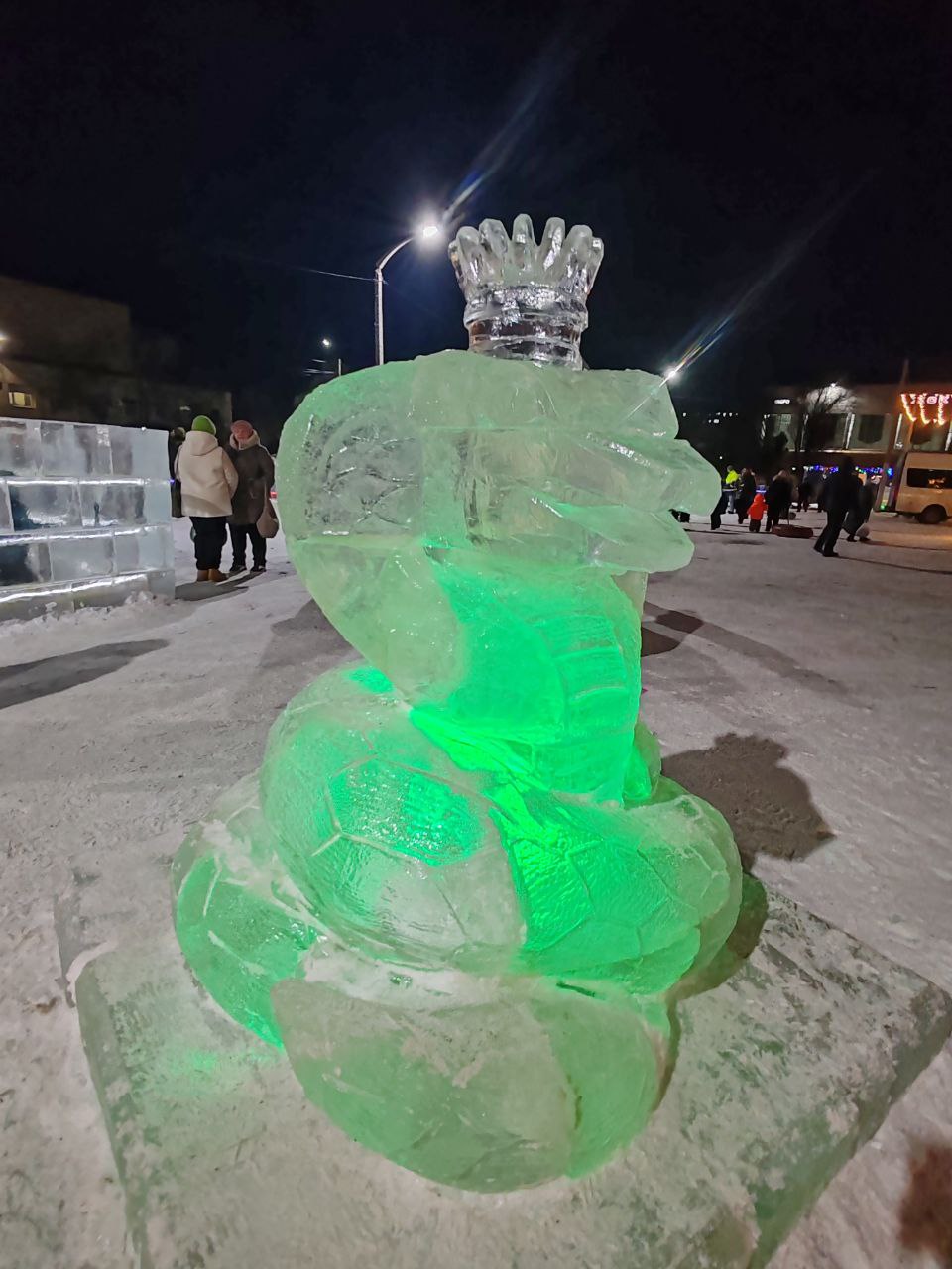 По словам Григория, на изготовление ледяных фигур для нашего городка у него уходило по пару дней на каждую, только символ наступающего года - змею - сделал за день.
