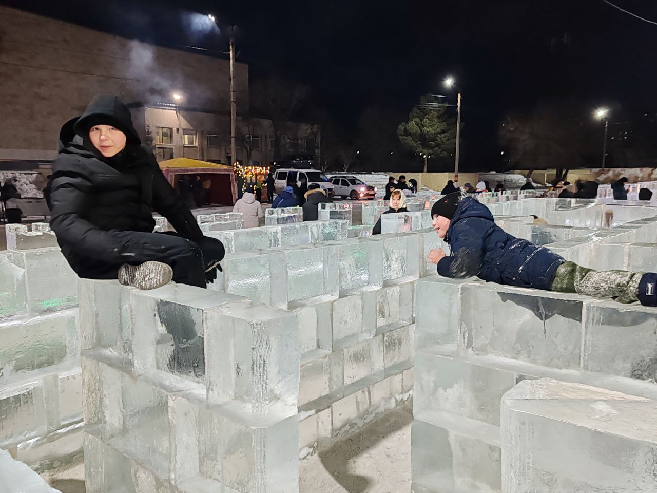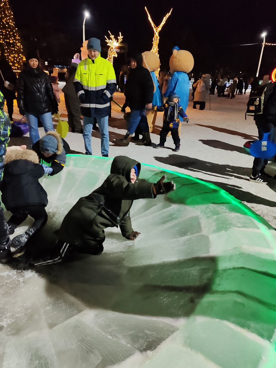 Отдельно отметим старания рудничанина Григория Виноградова, который отвечал за фигуры изо льда: Деда Мороза, Снегурочку, кобру и ледяной трон в стиле «Игры престолов». Мы совершенно случайно встретили сегодня в городке этого талантливого человека. Увы, фотографироваться скромный Григорий наотрез отказался - отправил вместо себя 11-летнего сына Артема. Но охотно рассказал о себе и своей работе. Оказалось, Виноградов уже 18 лет занимается резьбой по мрамору и граниту, и это именно он изготовил основание для «Колокола памяти» в Рудном, а недавно сделал монумент для аллеи журналистов в Костанае. Несколько лет назад начал пробовать работать со снегом и льдом.