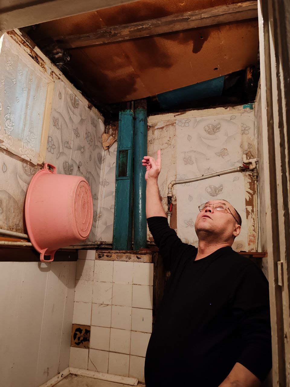 Сначала, в 2010 году, в квартирах №1 и №2 разморозилась система отопления, а 17 февраля 2024 года квартиру Пичугиной затопило. Над ней, в 3-й квартире, которая находится на балансе акимата, последние несколько лет проживали очередники из социально-уязвимых слоев населения. Сначала многодетная семья кандасов, потом мать-одиночка с тремя детьми. Этим семьям постепенно давали новое жилье, но, когда съехала мать-одиночка, случилась коммунальная авария.