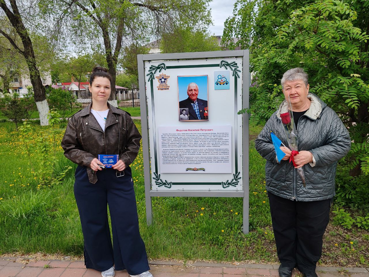 Мы побеседовали с внучкой Василия Федотова – Аленой Соцковой. Она вместе с мамой Ириной Васильевной пришла на торжественную церемонию, пока дедушка восстанавливается после сложного перелома. Фотографируем девушек у портрета Василия Петровича.
