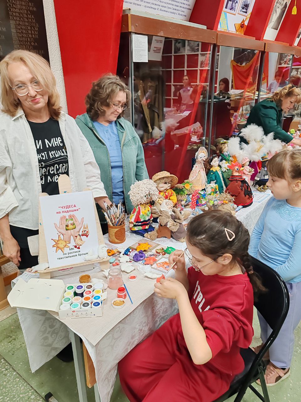 Помимо выставок, была организована ярмарка изделий местных рукодельниц, также интерактивы для детей и взрослых, викторины и конкурсы. Кто-то старательно выводил свое имя тушью, а это сделать сложно, если никогда не писал пером. Кто-то мастерил для себя милый сувенир на ярмарке.