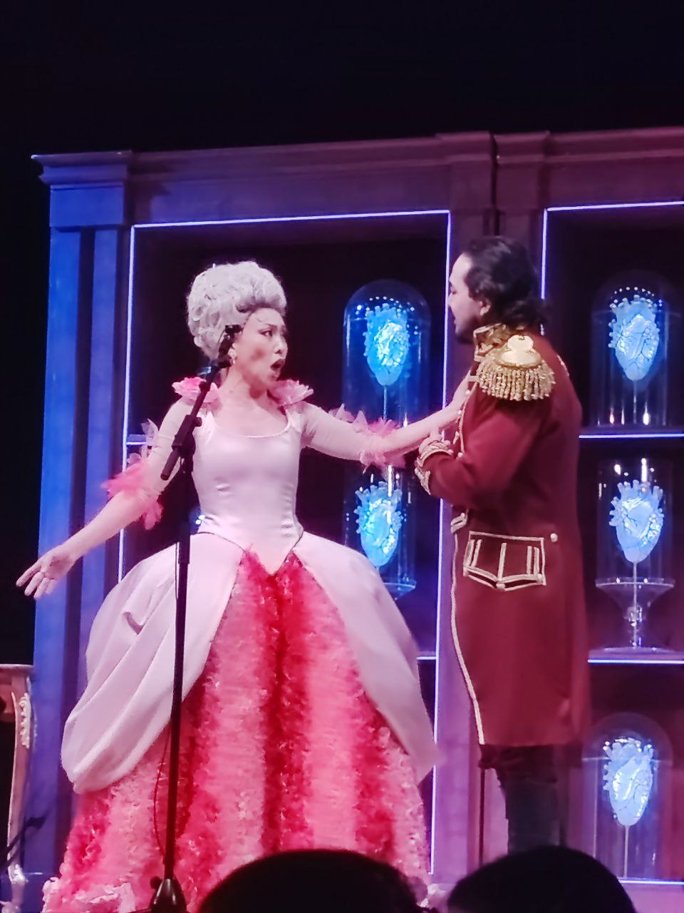 - Будучи сильной женщиной в жизни, ты легко реализуешь роль сильной женщины в спектакле, - улыбается солистка. – Физически тоже нужно постараться: берешь дыхание, а тебя корсет сжимает, есть во всем свои нюансы. У меня, как видите, мундир, я женщина - воин, во второй части спектакля я выхожу в брюках, мой персонаж переодевается в мужчину, потому что мне нужно обмануть Альчину, чтобы спасти своего мужа и своего друга. За костюмы и декорации хочу сказать спасибо Манане Гуния. Все, что рождают ум и руки этой потрясающей женщины, ни одного зрителя не оставляет равнодушным.