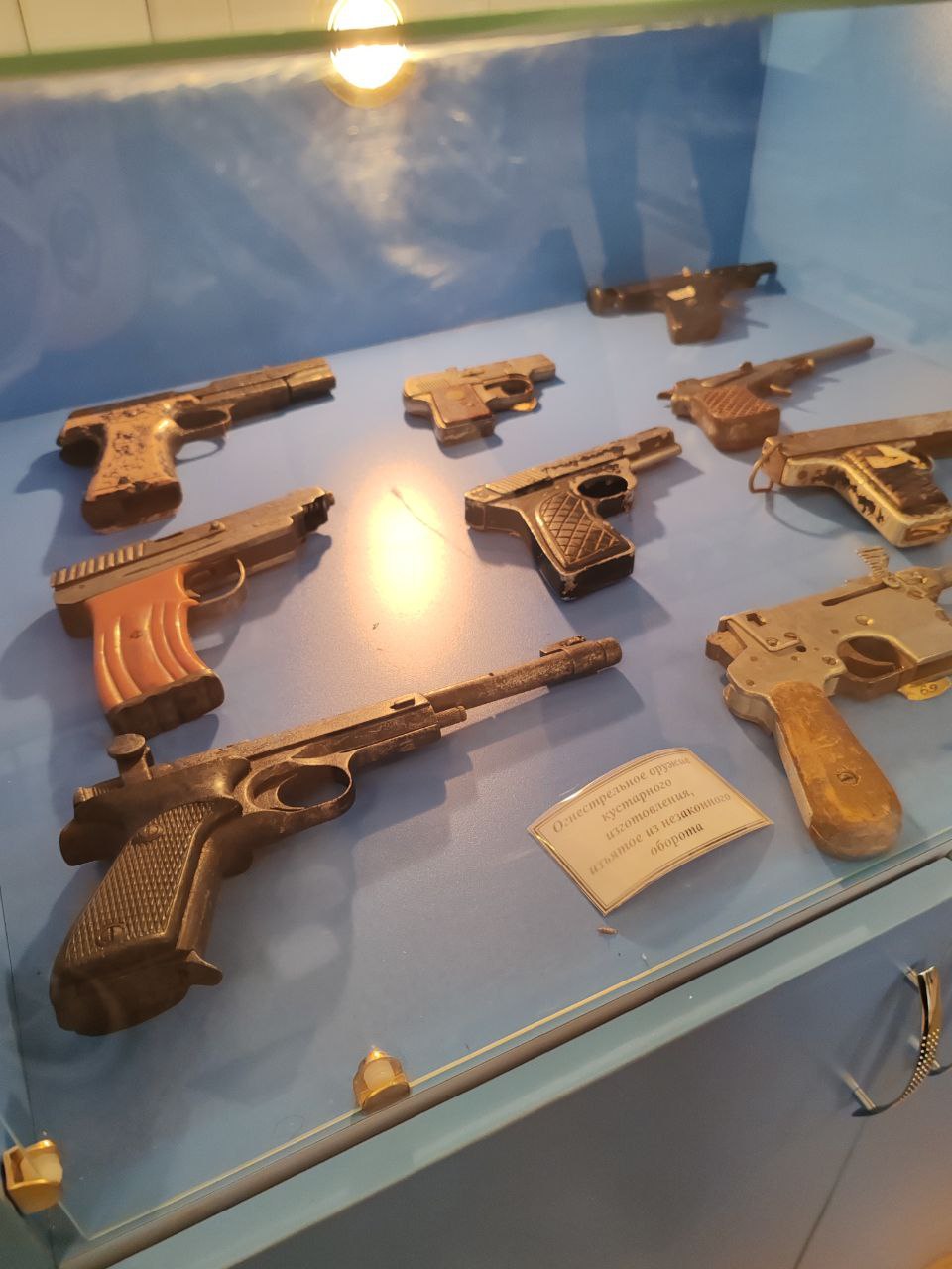 В музее УП собрана богатая коллекция огнестрельного и холодного оружия, изъятого из незаконного оборота. Есть как кустарно изготовленные экземпляры, так и заводские раритетные модели.