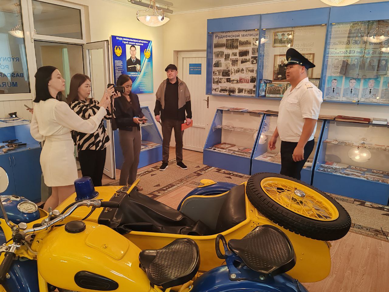 Посетили музей нашего Управления полиции. Он создан в 2015 году при участии ветеранов милиции и полиции города. В музее размещены портреты руководителей ведомства разных лет, сотрудников, проявивших героизм. Можно здесь увидеть советскую милицейскую форму и даже мотоцикл «Урал М-62» 1963 года выпуска, на котором милиция патрулировала улицы города, ездили инспекторы ГАИ и даже оперативно-следственные группы. По словам сопровождающего журналистов заместителя начальника Управления полиции Рудного Кайрата Кадырова, мотоцикл приехал сюда своим ходом, он вполне исправен до сих пор.