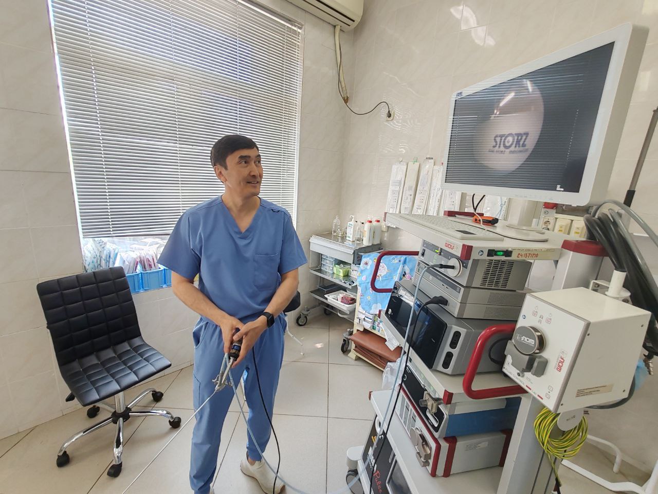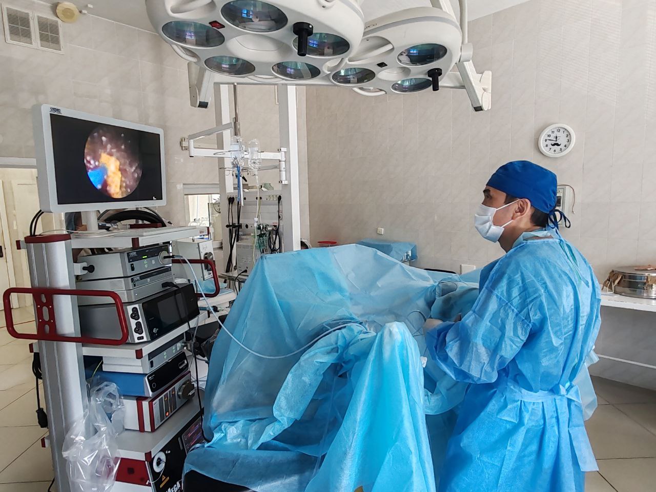 В этот же день, когда поступило оборудование, заведующий отделением урологии РГМБ Алмас Эстияров провел операцию с применением нового уретерореноскопа. Был прооперирован мужчина 80 лет с множественными камнями в мочевом пузыре и обоих мочеточниках. Как отметил доктор Эстияров, несмотря на преклонный возраст пациента, послеоперационное восстановление – вопрос нескольких дней.