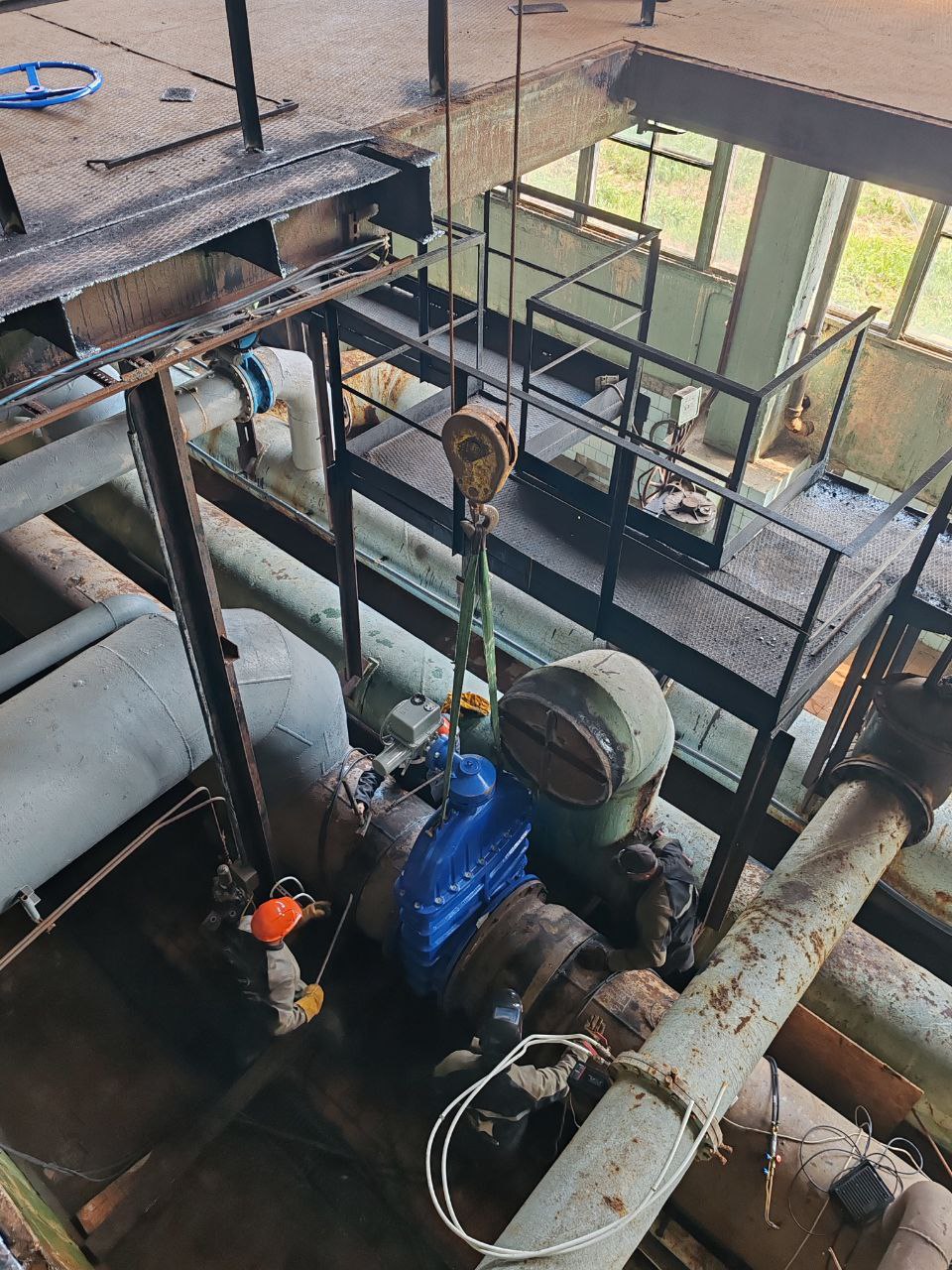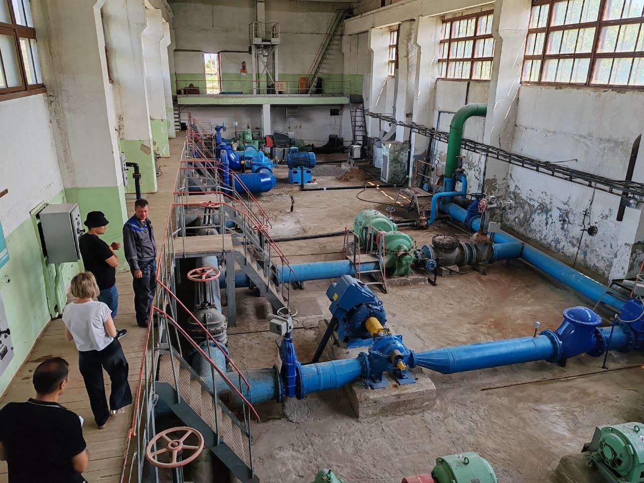 Проехали на городскую фильтровальную станцию. Начальник участка Алексей Жиляев показал новые насосы, в том числе, насос для промывки фильтров на станции собственных нужд.