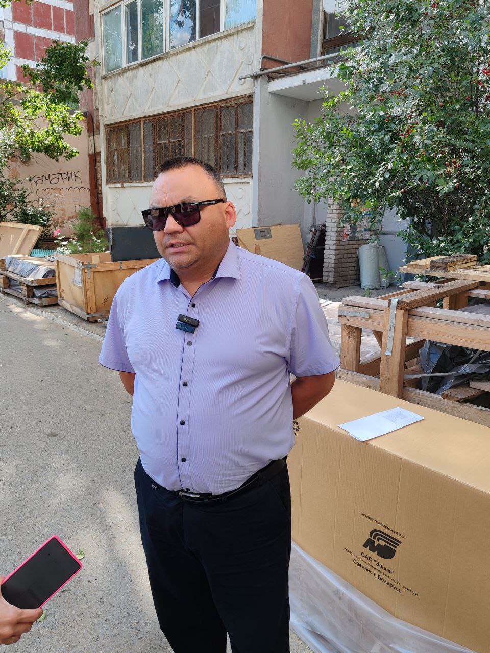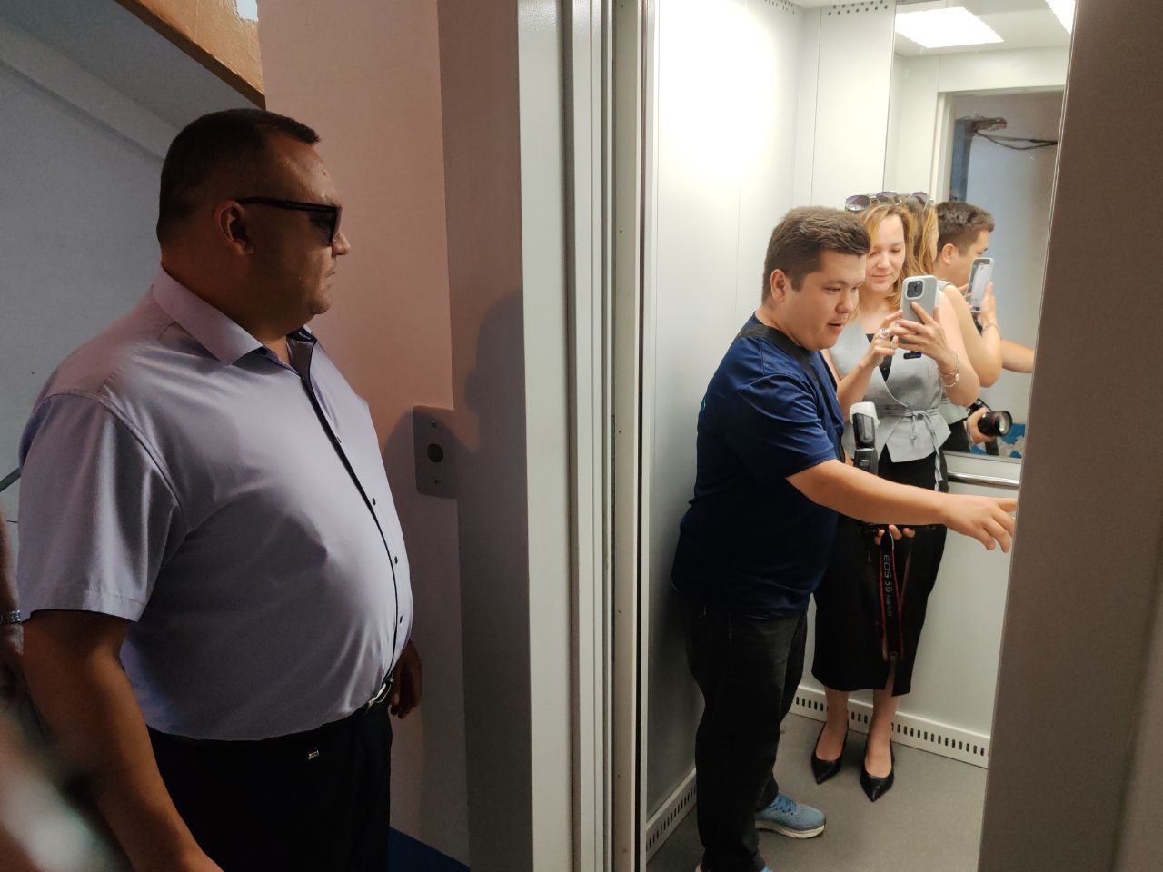 В ходе пресс-тура по объектам ЖКХ руководитель отдела жилищно-коммунального хозяйства акимата Рудного Юрий Итемгенов сопроводил журналистов в дом №96 по ул. Сандригайло, где сейчас как раз меняют старый лифт на новый. В соседнем 98-м доме во всех пяти подъездах лифты уже поменяли.