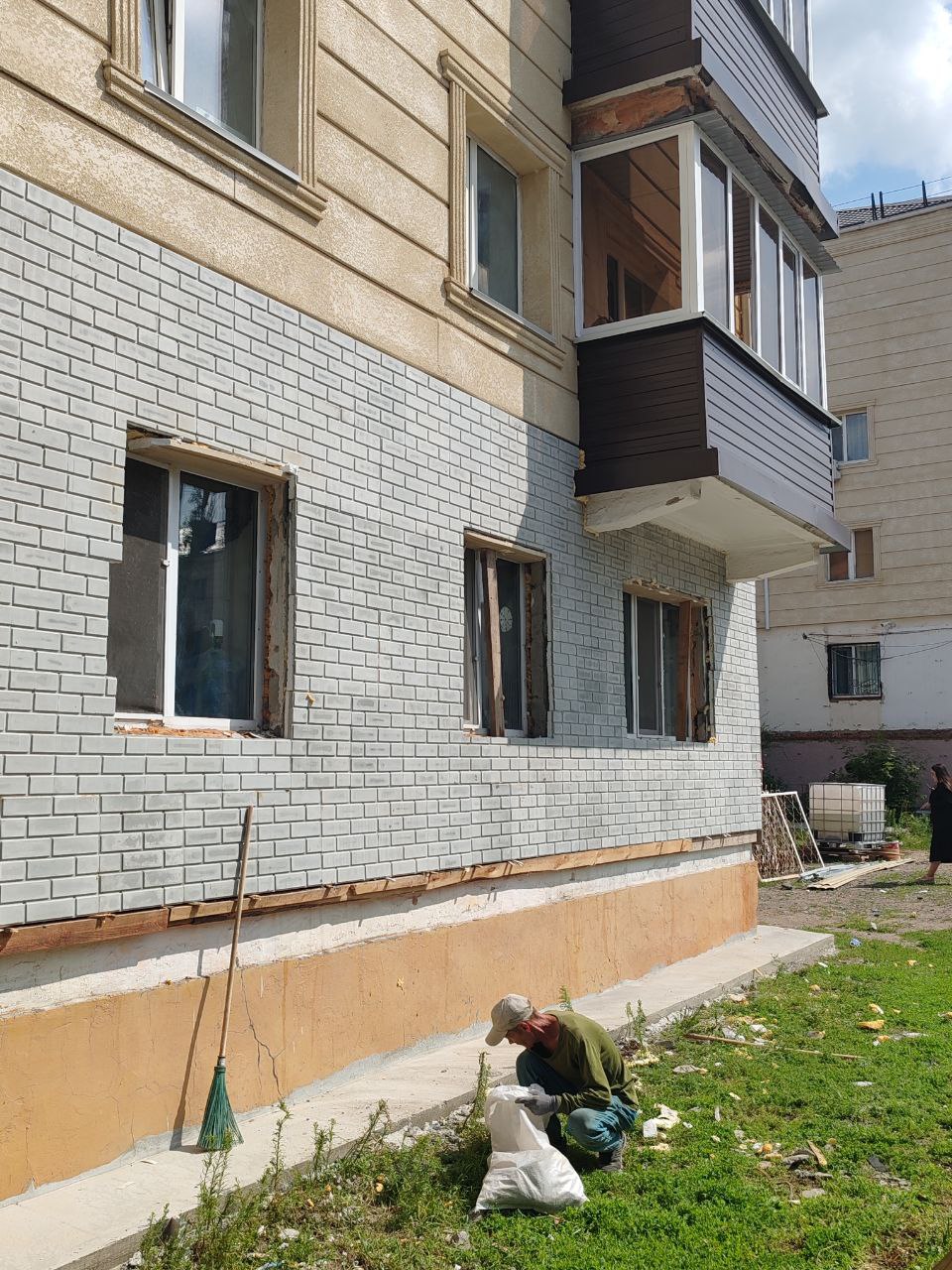- По кровле: замена деревянной обрешетки, далее пароизоляция и металлочерепица. Вентиляционные шахты обшиваются профилированным листом, делается кровельное ограждение, снегозадержание, водосточная система. Кровельные работы уже завершены. По фасадам: мы остекляем балконы, непосредственно для облицовки фасадов применяем фиброцементную плиту и термопанели. Эти материалы уже зарекомендовали себя: в Костанае с 2018 года их применяют, и дома до сих пор прекрасно выглядят.