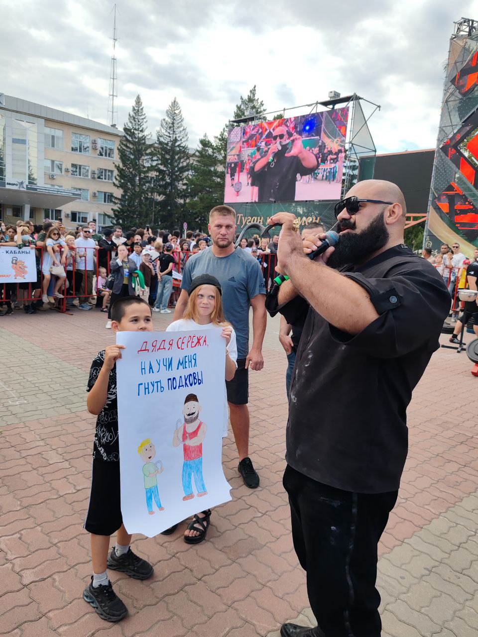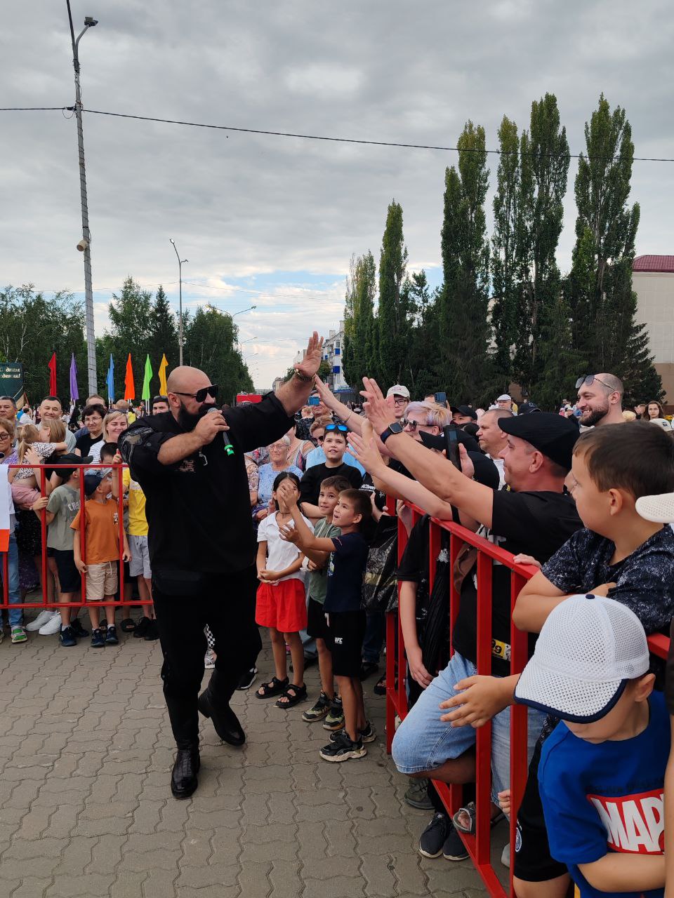 Мы убедились в этом и на открытии ФОКов, где также присутствовал Сергей, и на центральной площади, где он вместе с Максимом Фроловым был ведущим экстрим-шоу и, конечно, демонстрировал свои знаменитые силовые трюки: надувал грелки, гнул подковы.