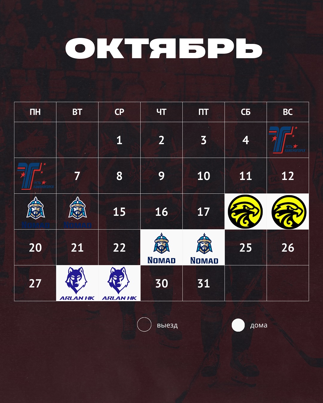 Игры с командой «Бейбарыс» пройдут 20 и 21 сентября, начало в 17 часов, на льду «Горняк Арены».