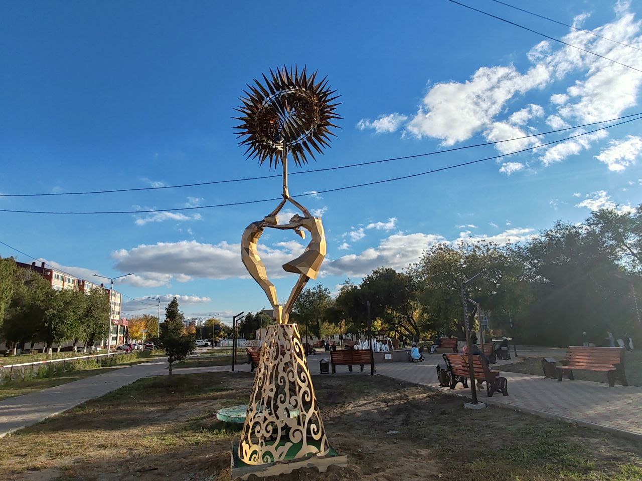 А пока мы записывали интервью с Серикжаном Ищановым, со скульптурой случилась беда: ее кинетический элемент – «солнце» - согнулся под напором ветра и мокрого снега. В итоге «солнце» сегодня, 29 сентября, демонтировали, «обезглавив» композицию.