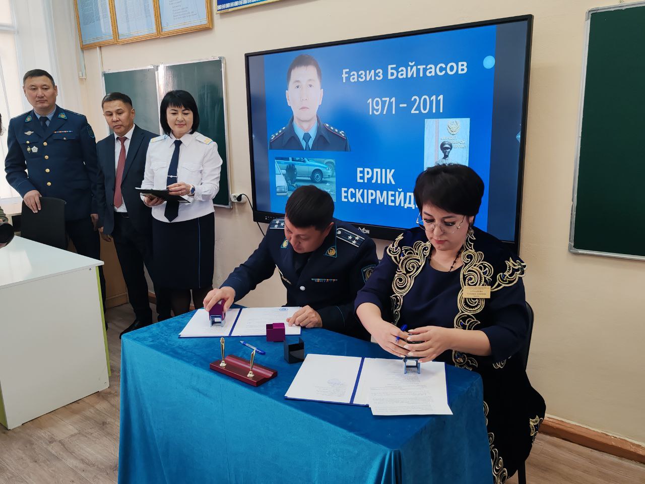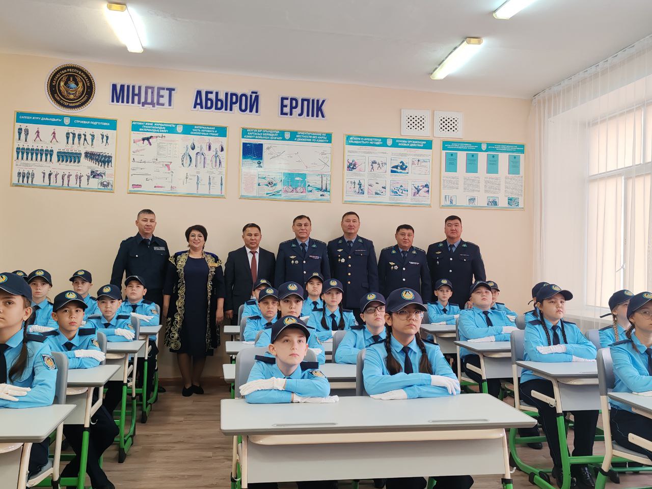 В школе №14 имени Д. Карбышева открыли полицейский кабинет, а также появилось новое объединение - «Жас сақшы», то есть будущих помощников полиции.