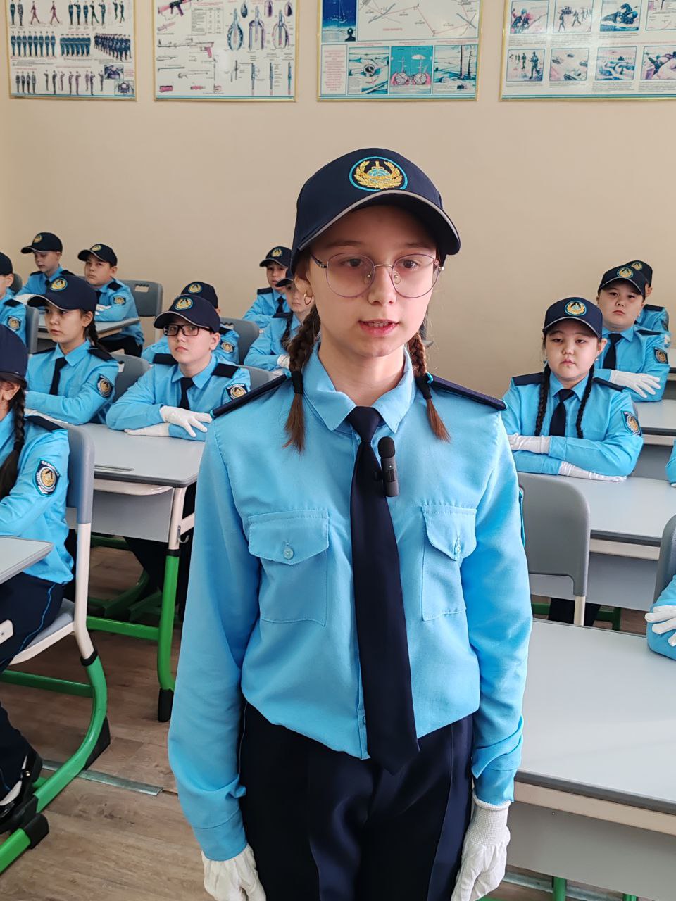 - Эти ребята – юные патриоты, гордость нашей школы. Они имеют свою, специализированную форму юного полицейского. Для школы это впервые, ведь у нас ученики носят либо кадетскую форму, либо форму «Жас Сарбаз», - сообщила директор школы им. Д. Карбышева Гульнара Урманова.