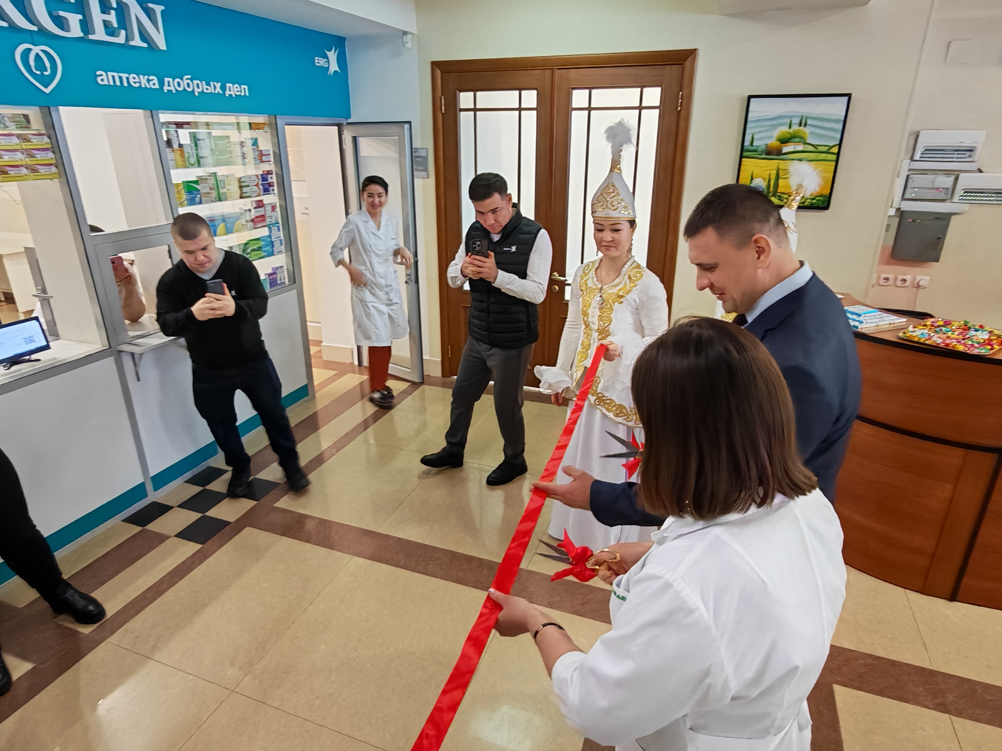На открытии аптеки «Mergen» сегодня побывала и наш корреспондент. Атмосфера в Медицинском центре «Евразия» (бывший ЛОЦ «Рассвет» - прим.) была праздничной. Пригласили почетных гостей, торжественно перерезали красную ленточку.
