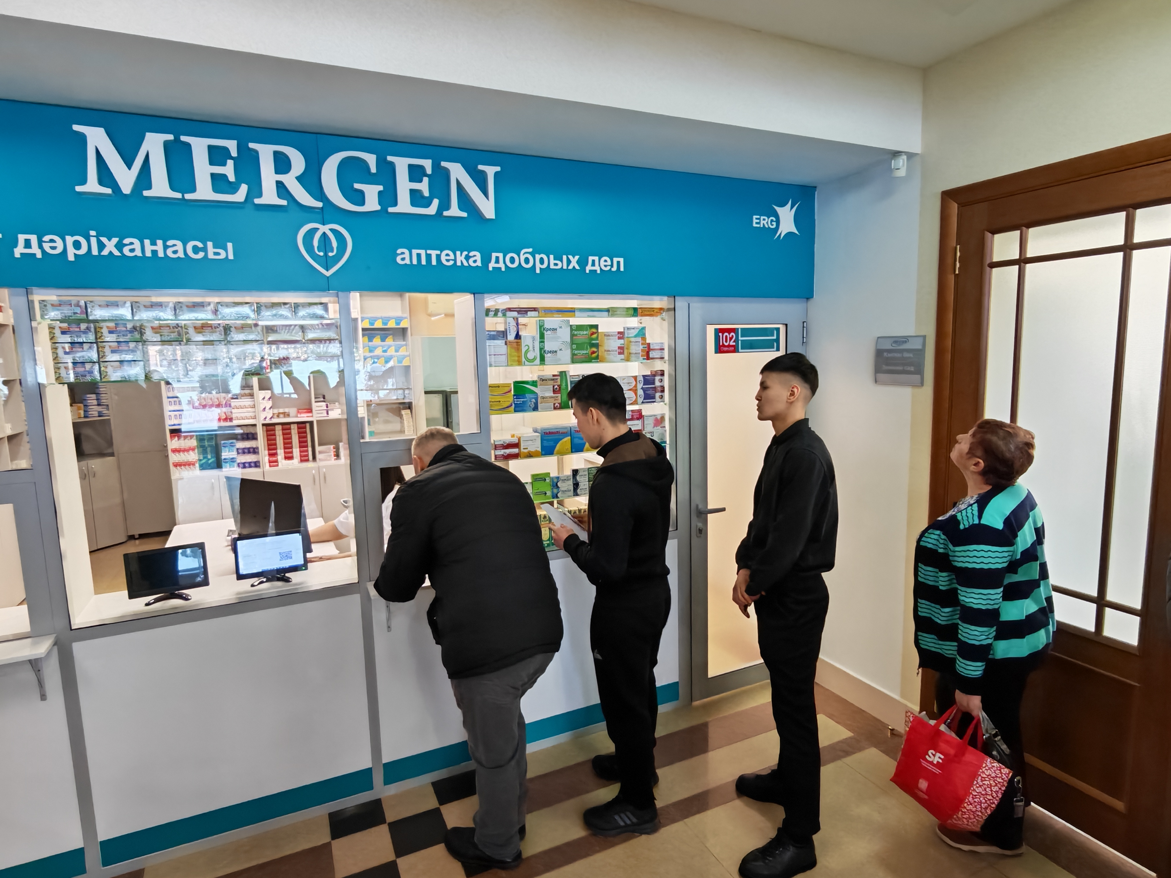 Социальная аптека «Mergen» расположена в холле МЦ «Евразия», вход – центральный. Часы работы: с 8.00 до 17.00 в будние дни, в субботу – с 8.00 до 12.00. Воскресенье – выходной.