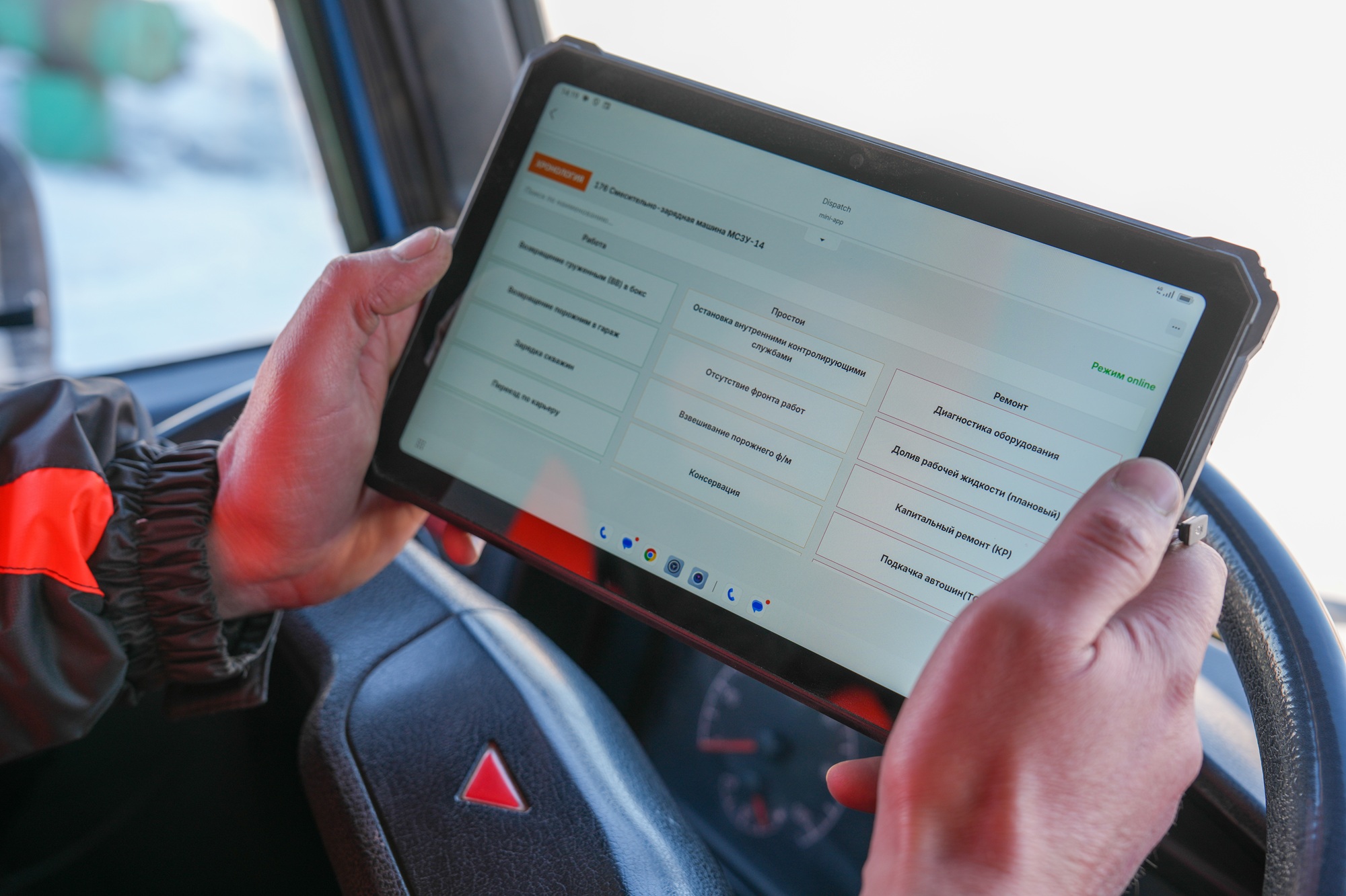 - «Мобильная лента» меняет подход к работе с данными: теперь водители фиксируют события – работу, простой или ремонт – непосредственно в процессе смены с помощью планшетов, - говорит руководитель проекта от BTS Михаил Плотников. – Событие продолжается до изменения статуса, без необходимости дополнительных записей и отчетов после завершения смены.