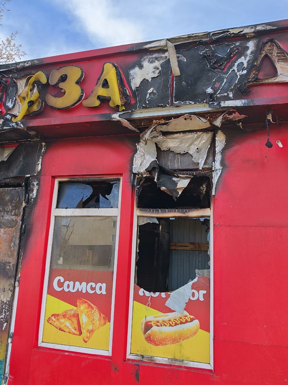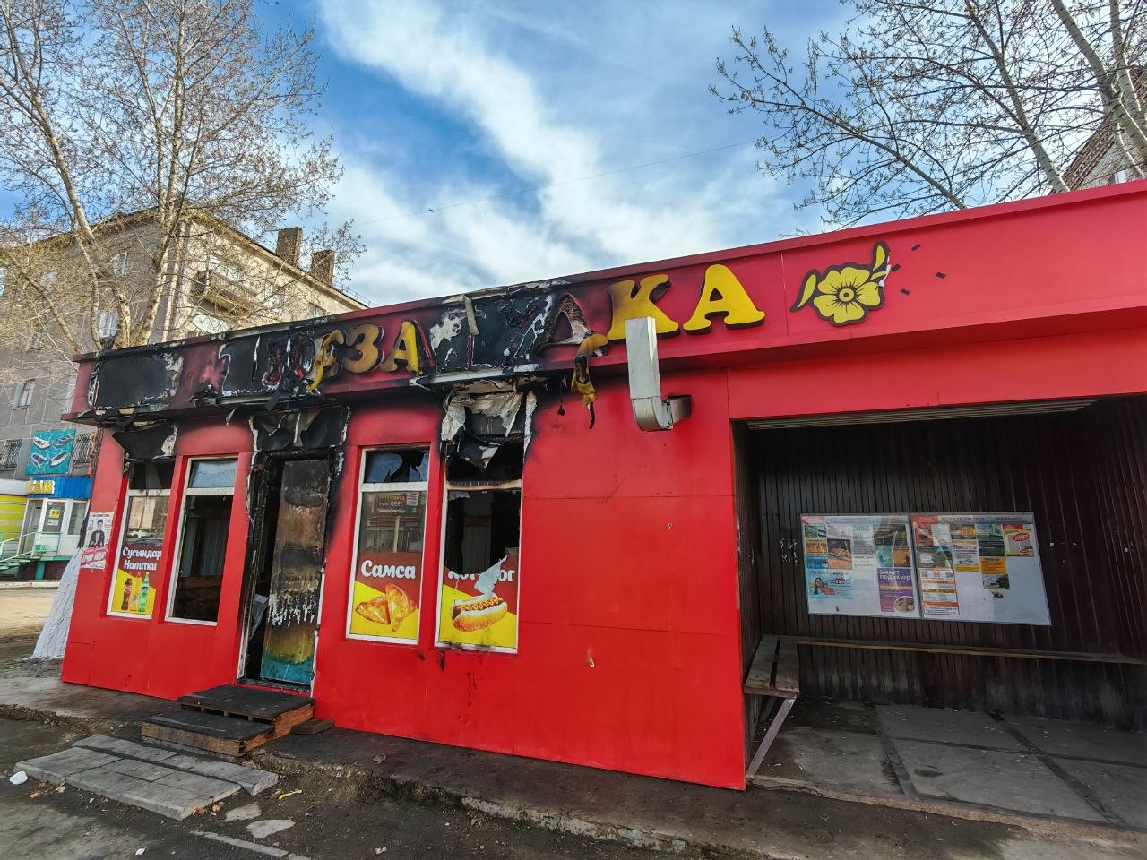 Речь о точке быстрого питания на остановке «Незабудка» по ул. Ленина. Остановка, у которой с закусочной общая кровля, не пострадала.