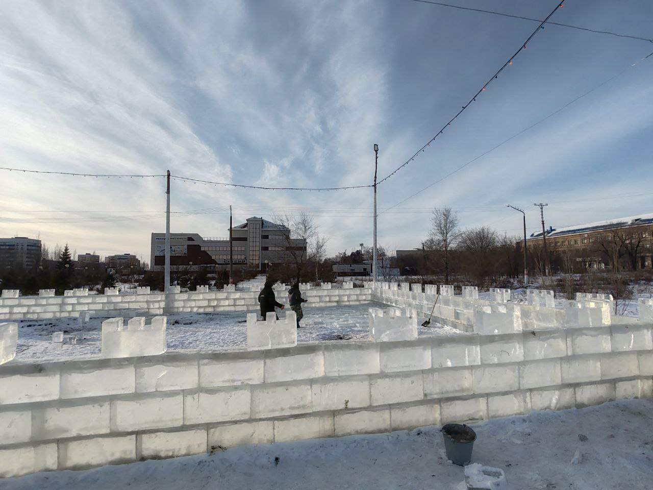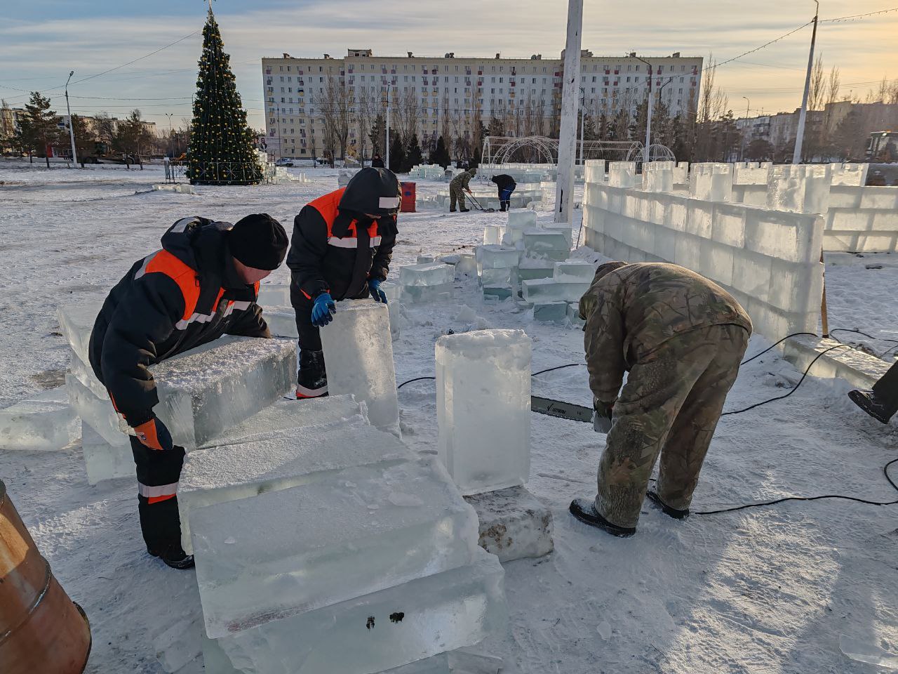 Из-за погоды подрядчики – местные фирмы «Погода в доме» и «Любимый город» - долго не могли приступить к строительству – не было ни снега, ни льда. Только несколько дней назад начали нарезать на реке лед, когда его толщина это позволила. А сроки поджимают – Новый год «на носу»! Тем не менее, будут стараться завершить работы до конца этой недели. На объекте ежедневно работает не менее 20 человек.
